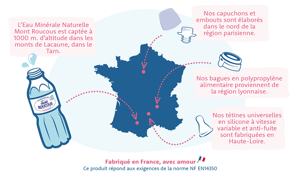 On ne pouvait pas proposer un adaptateur de tétine qui provienne du bout du monde alors que notre eau est captée dans le Tarn !